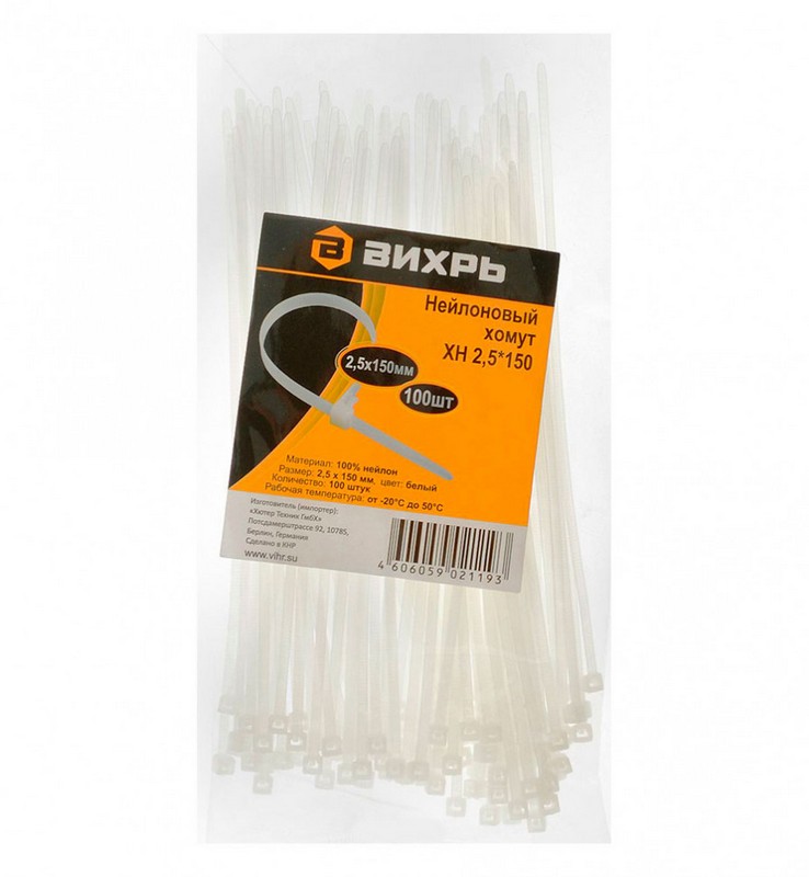 Хомут нейлоновый 2,5*150 Б (100шт) Вихрь