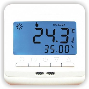 Терморегулятор GrandeksG11H (электронный, программируемый) - терморегулятор с крупным жидкокристаллическим дисплеем с выносным датчиком температуры пола. Имеет встроенный датчик воздуха. Может быть использован в любых системах электрического отопления для внутренних бытовых помещений. Управление: Управление осуществляется при помощи пяти кнопок. Информация о режимах работы, значения установленной и текущей температур, день недели, реальное время, установленная программа отображаются крупными и понятными символами на жидкокристаллическом дисплее. При нажатии любой кнопки на жидкокристаллическом дисплее автоматически включается подсветка синего цвета, что даёт возможность управлять терморегулятором при отсутствии наружного освещения.
