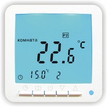 Управление: Управление осуществляется пятью кнопками. Информация о режимах работы, значения установленной и текущей температур отображаются крупными и понятными символами на жидкокристаллическом дисплее на русском языке. При нажатии любой кнопки на жидкокристаллическом дисплее автоматически включается подсветка голубого цвета, что даёт возможность управлять терморегулятором при отсутствии внешнего освещения. Позволяет снизить энергопотребление: Терморегулятор G09H оснащен микропроцессором, при помощи которого задаются временные программы для 5 рабочих дней недели и программы для выходных дней. С помощью функции программирования оптимизируется работа системы теплого п