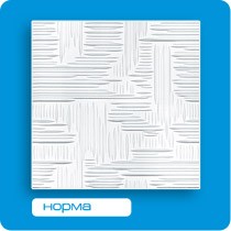 Плита потолочная «Норма» — отделочный материал, изготовленный из пенополистирола методом штамповки. Предназначен для декорирования потолков в гостиных, спальнях, прихожих и других комнатах с интерьером в классическом стиле. Плита представляет собой квадрат со стороной 50 см. Толщина вместе с рельефом — 6 мм. Одной упаковки (8 плит) достаточно для покрытия 2 кв.м. поверхности. Изготовлено в России.
